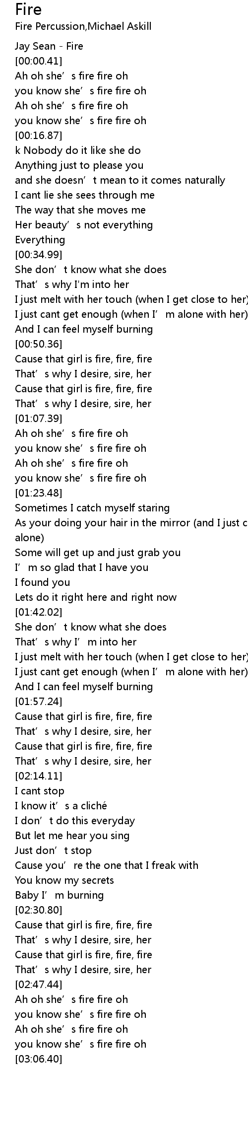 | [00:00.10] | Jay Sean - Fire |