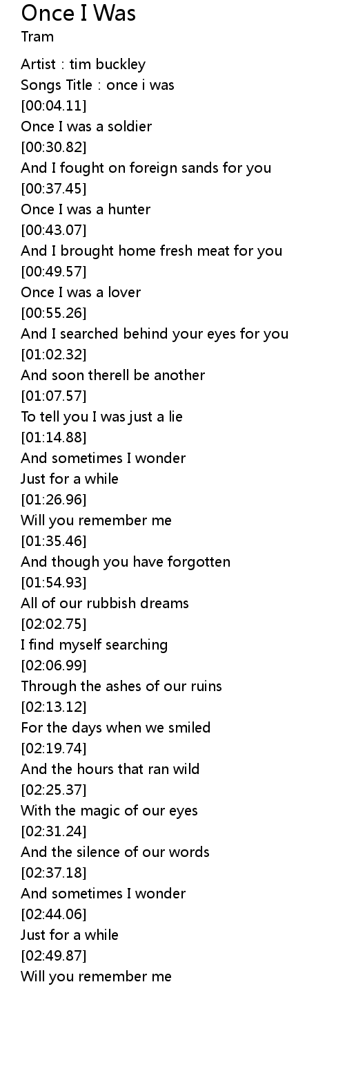 | [00:02.36] | Songs Title: once i was |