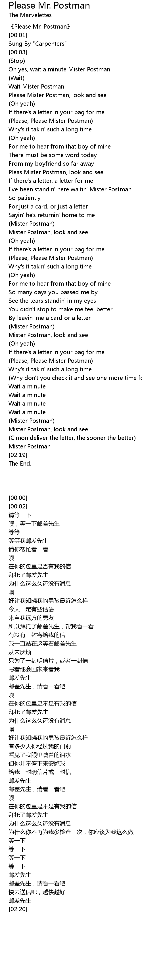 | [00:00] | 《Please Mr. Postman》 |