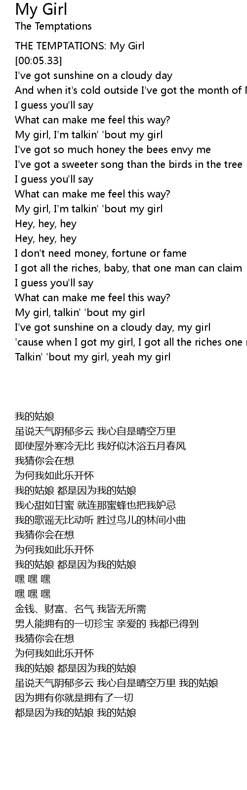 My girl, talkin' 'bout my girl |