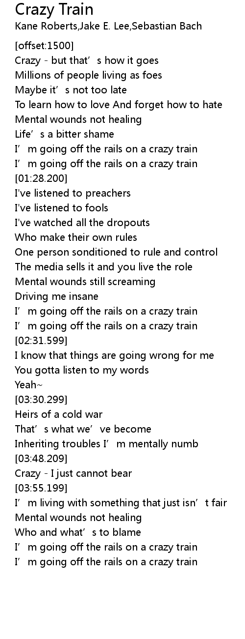| [04:11.649] | I’m going off the rails on a crazy train |
