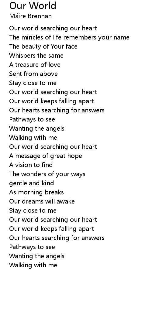 Our world searching our heart |