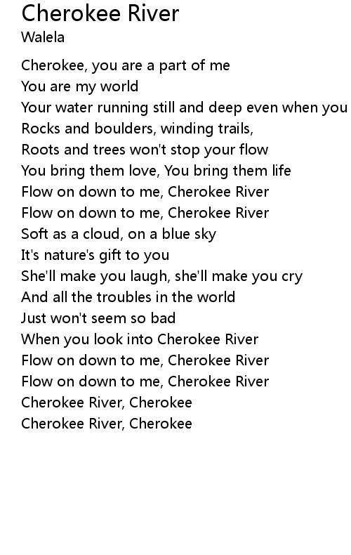 Flow on down to me, Cherokee River |
