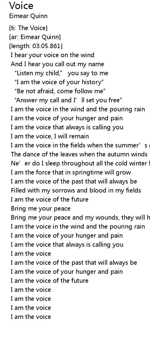 | [02:13.045] | I am the voice in the wind and the pouring rain |