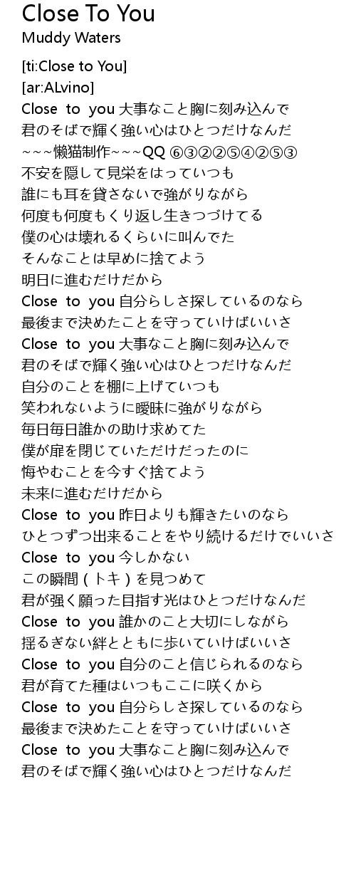| [02:04.540] | Close to you 昨日よりも輝きたいのなら |