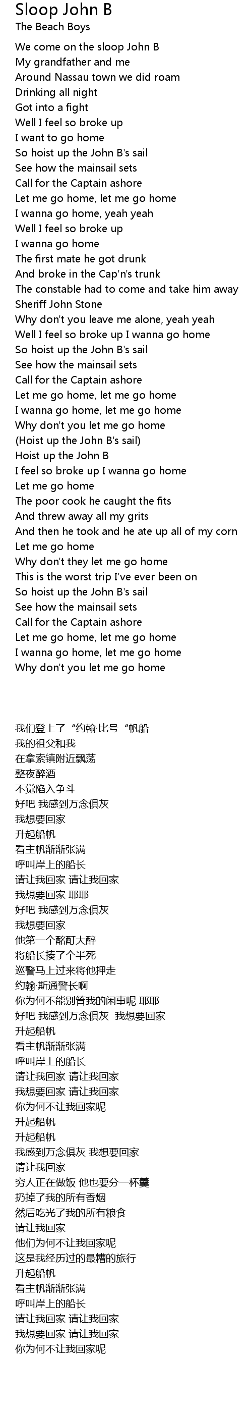 Well I feel so broke up I wanna go home |