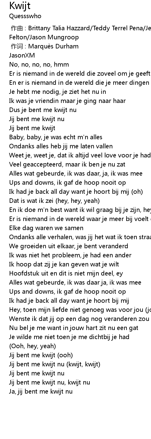 | [02:26.85] | Jij bent me kwijt nu (kwijt, kwijt) |