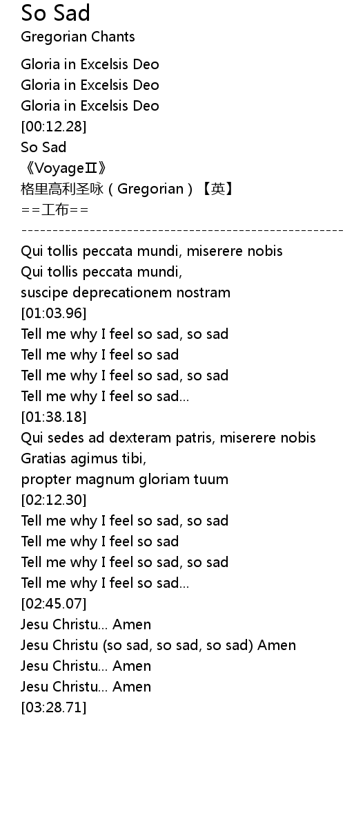 | [02:57.12] | Jesu Christu (so sad, so sad, so sad) Amen |
