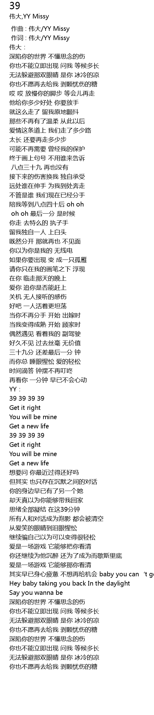 | [00:01.000] | zuò cí : wěi dà YY Missy |