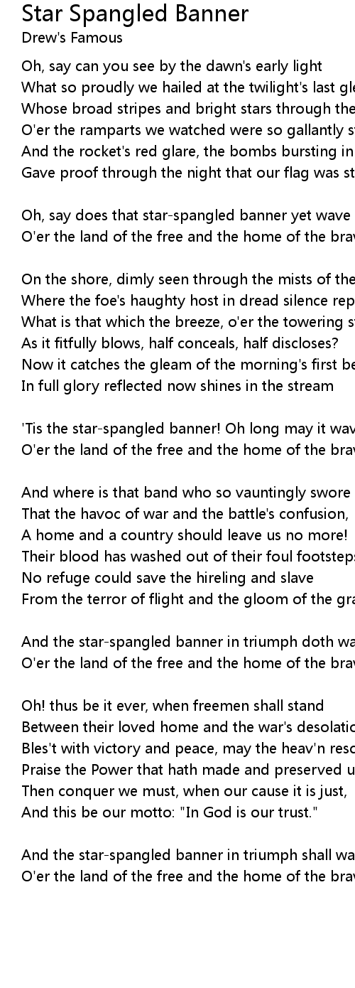 'Tis the star-spangled banner! Oh long may it wave |
