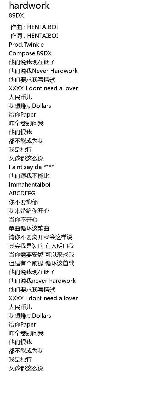 | 歌曲 | hardwork |