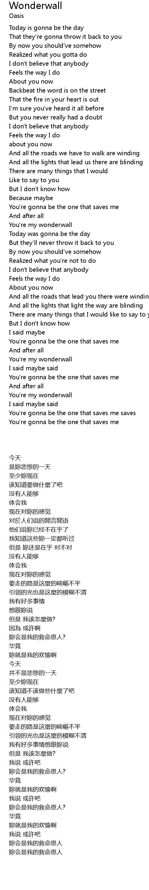 Wonderwall 歌词