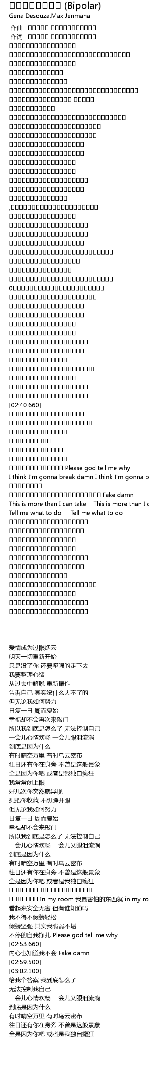 | [02:49.660] | 不停的自我挣扎 Please god tell me why |