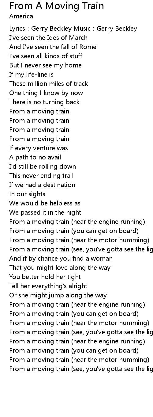 | From a moving train hear the motor humming | |
