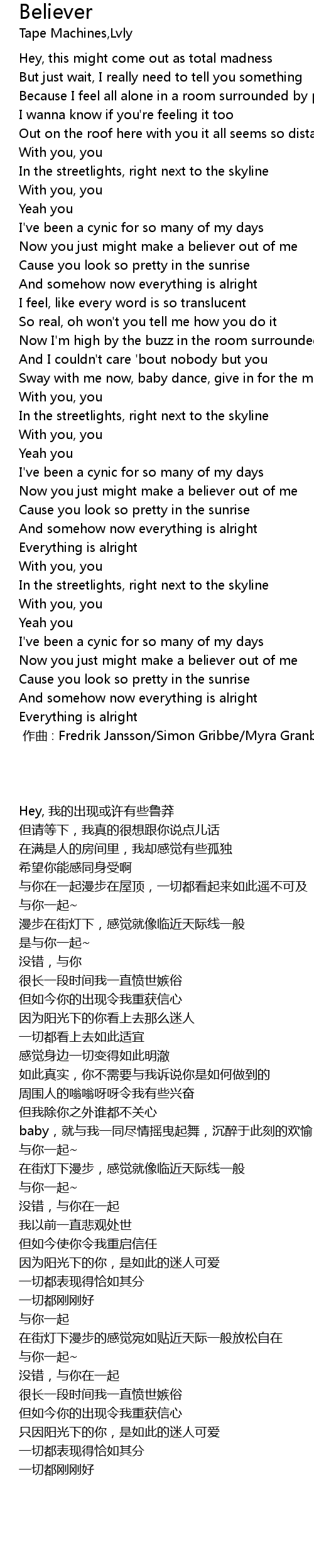 | [00:00.000] | 作曲 : Fredrik Jansson/Simon Gribbe/Myra Granberg |