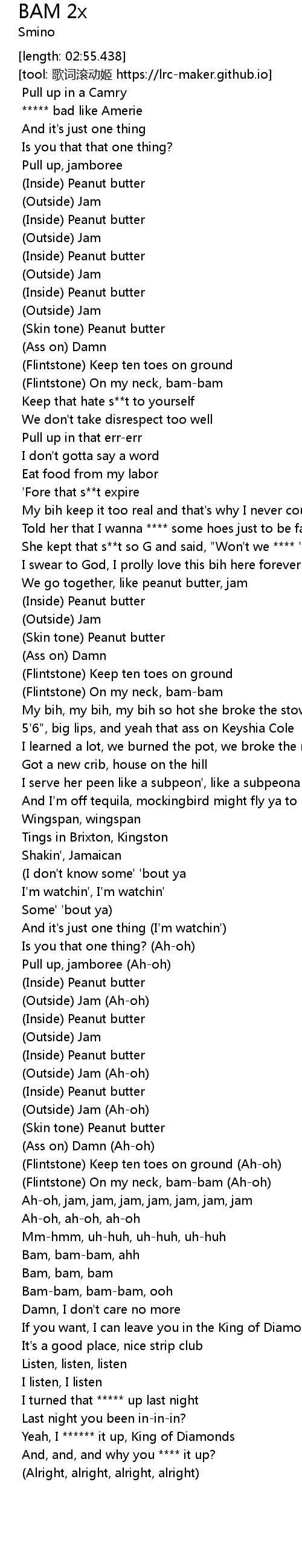 | [02:19.407] | Bam-bam, bam-bam, ooh |