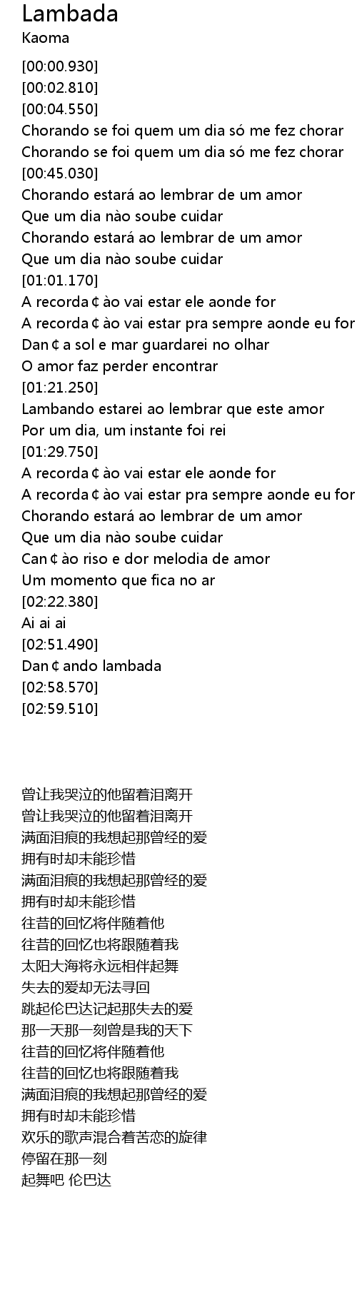 | [01:22.000] | 跳起伦巴达记起那失去的爱 |