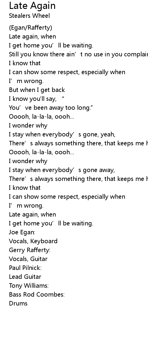 | 歌曲 | Late Again |