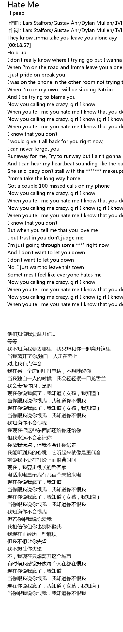 | [00:55.89] | When you tell me you hate me I know that you don' t |
