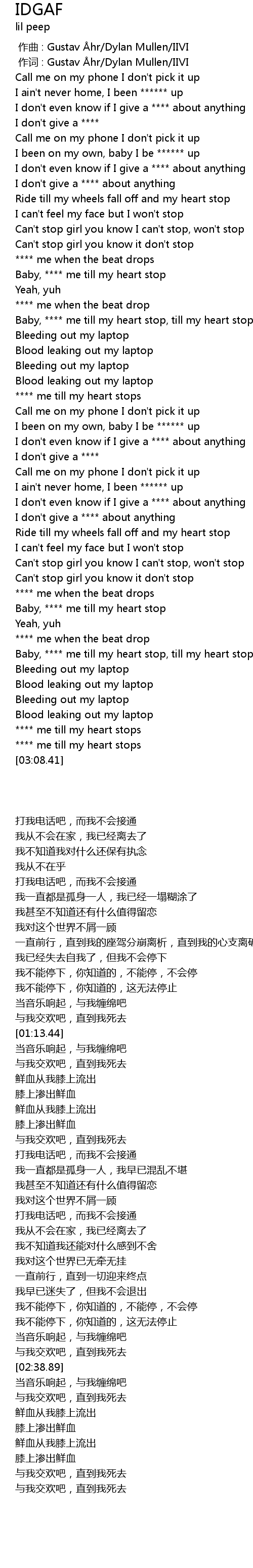 | [00:40.45] | I don't even know if I give a **** about anything |