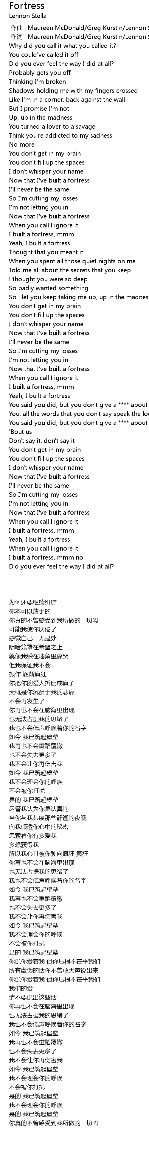 | [02:41.95] | 是的 我已筑起堡垒 |