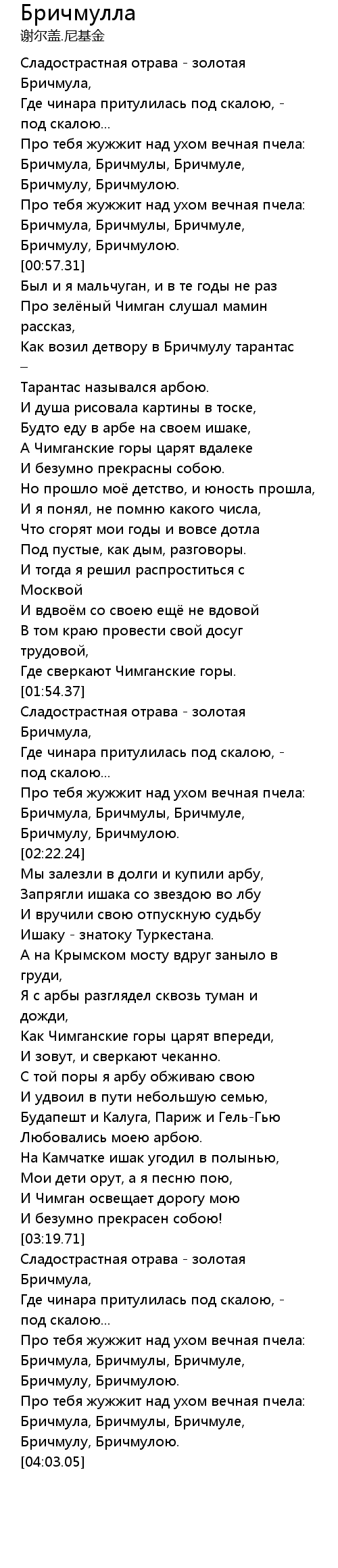 [03:55.34] Бричмула, Бричмулы, Бричмуле, Бричмулу, Бричмулою.