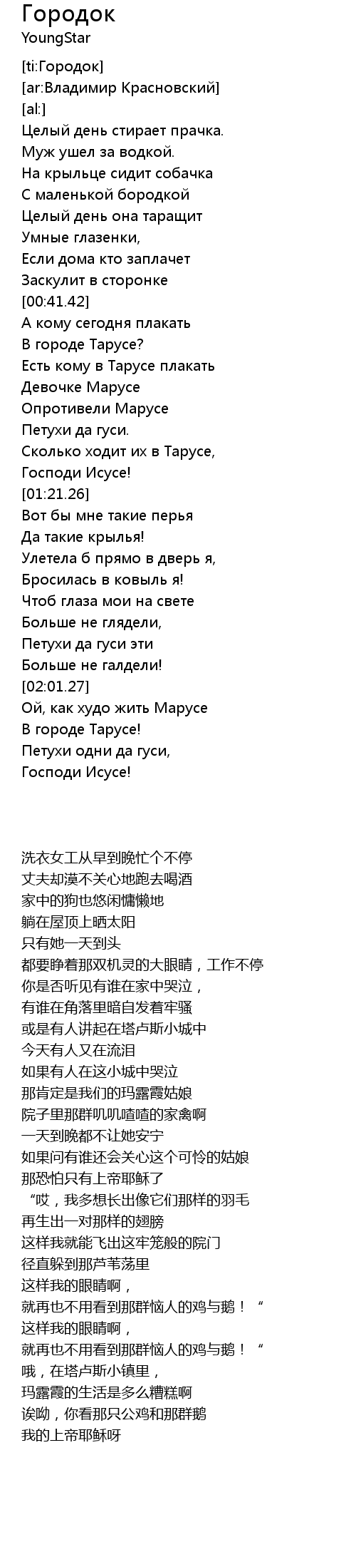 | [00:56.26] | Есть кому в Тарусе плакать |