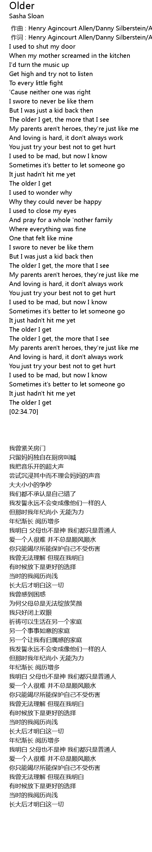 | 歌曲 | Older |