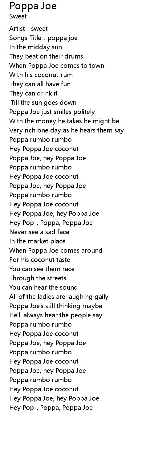 | [00:48.95] | Hey Pop, Poppa, Poppa Joe |