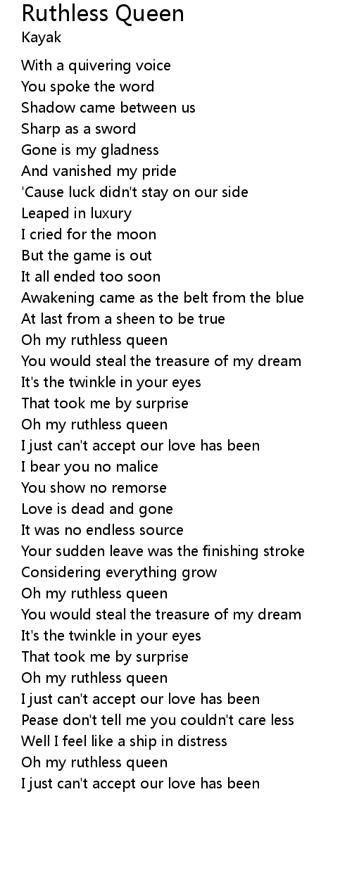 Oh my ruthless queen |