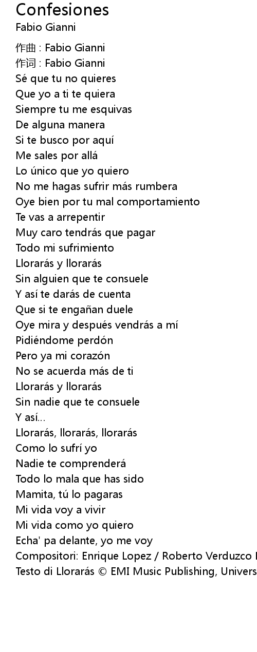 | Testo di Llorarás © EMI Music Publishing, Universal Music Publishing Group |