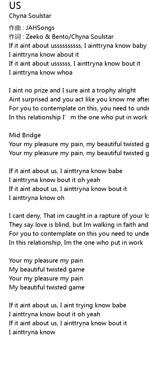 | Your my pleasure my pain, my beautiful twisted game | |