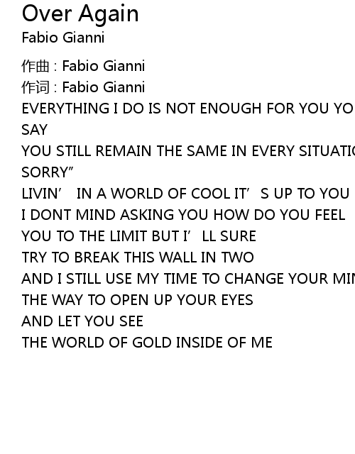 | 歌曲 | Over Again |