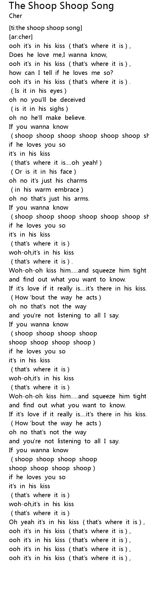 | [02:26.272] | ooh it' s in his kiss that' s where it is, |