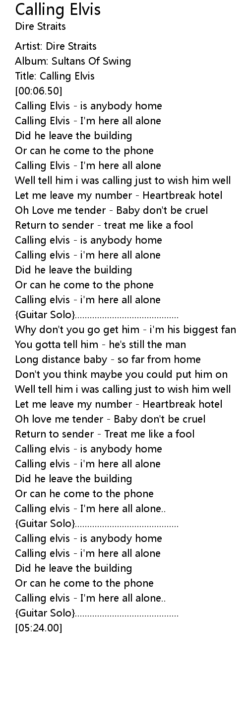 Calling elvis - i'm here all alone |