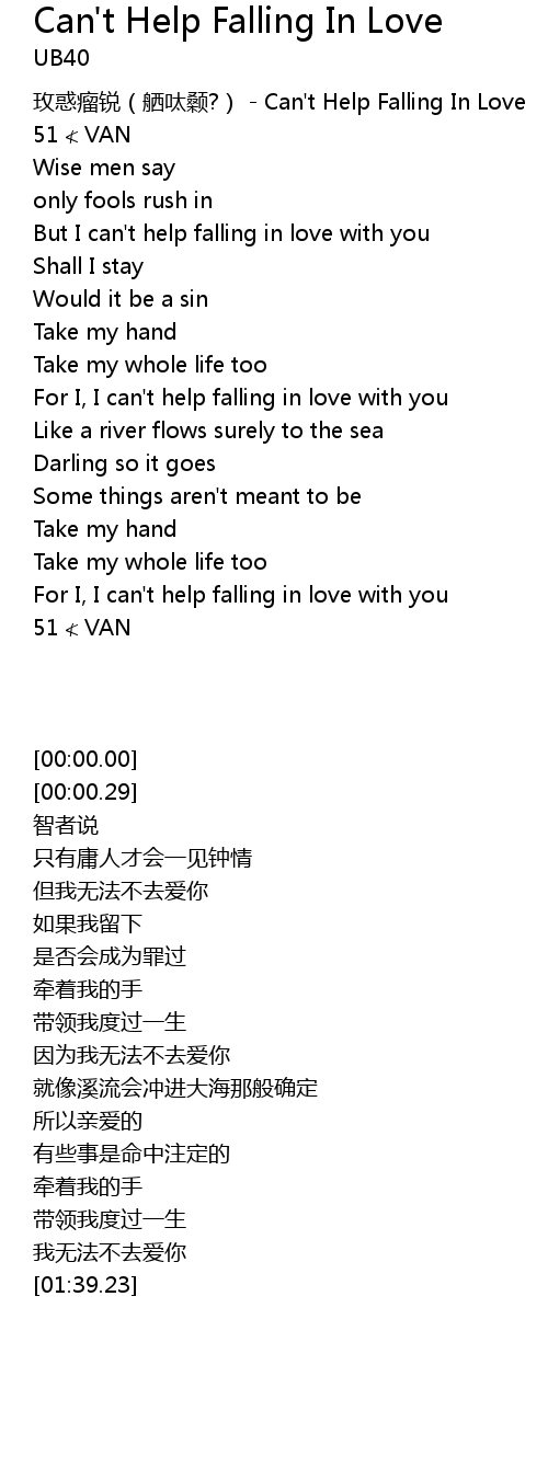 | [00:00.00] | 玫惑瘤锐(舾呔颡?) - Can't Help Falling In Love |