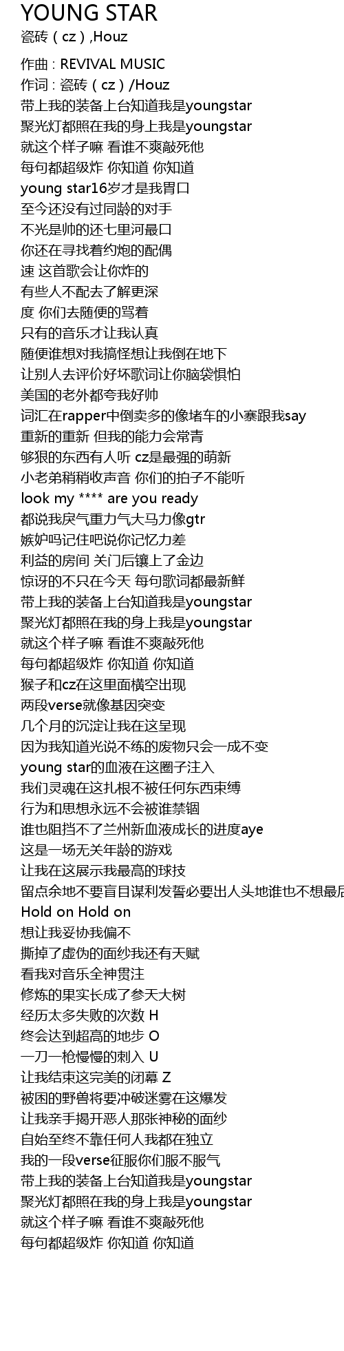 | 作词 : 瓷砖(cz)/Houz | |