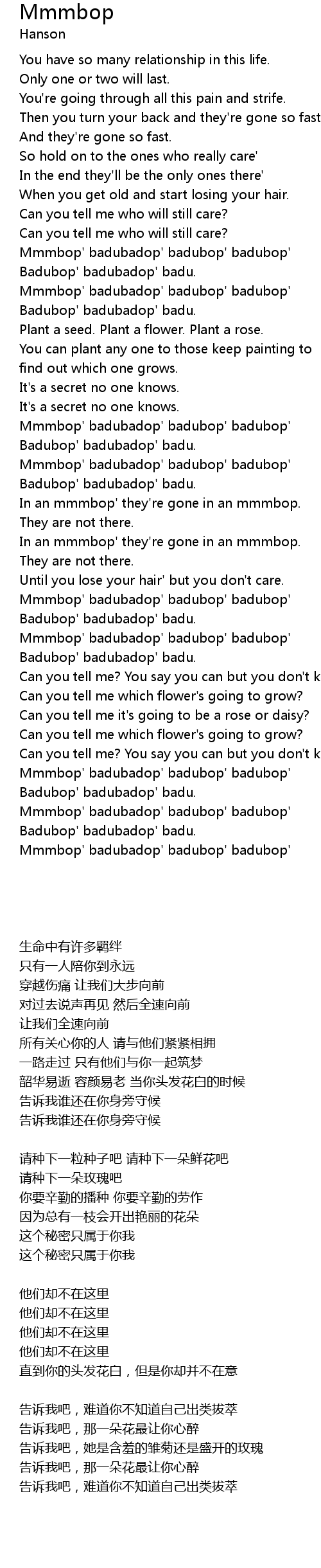 Mmmbop' badubadop' badubop' badubop' |