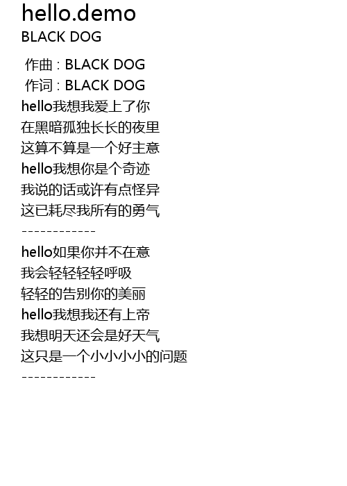 | [00:01.000] | 作词 : BLACK DOG |