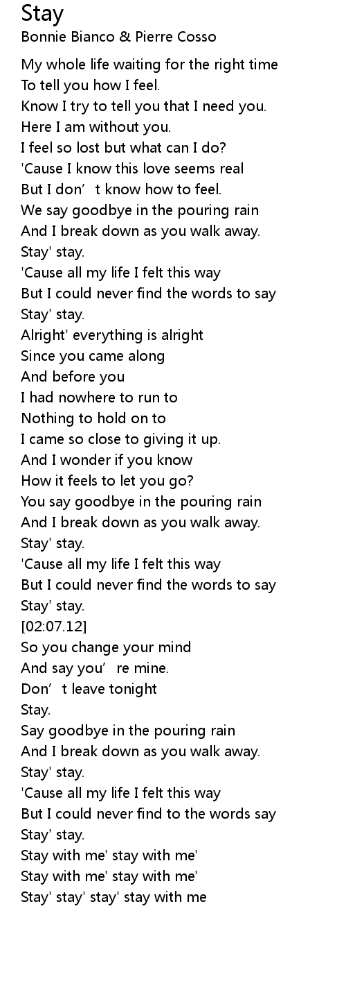 | [03:19.66] | Stay' stay' stay' stay with me |