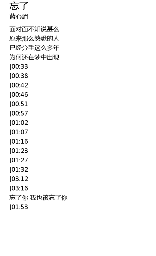 | [02:49][01:16] | wang le wo ni ying gai wang le wo |