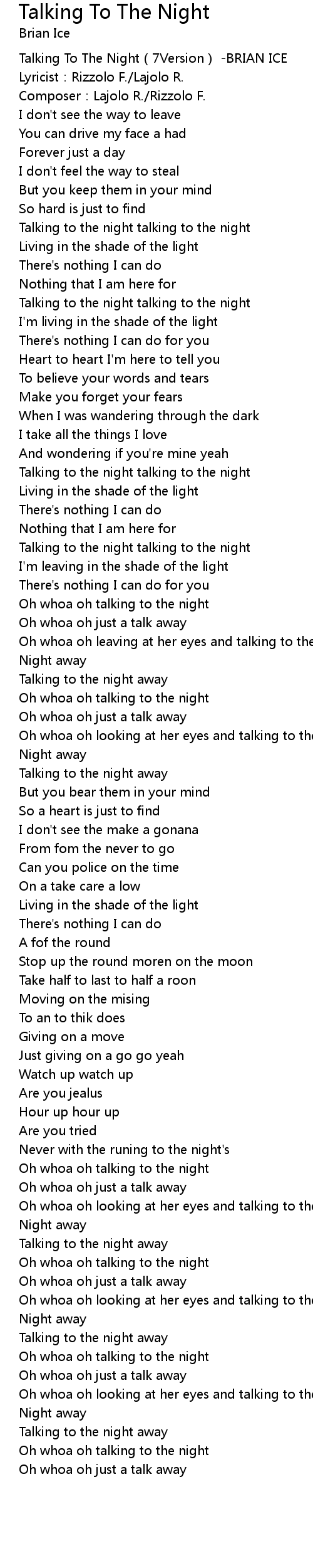 | [00:00.160] | Talking To The Night 7Version BRIAN ICE |