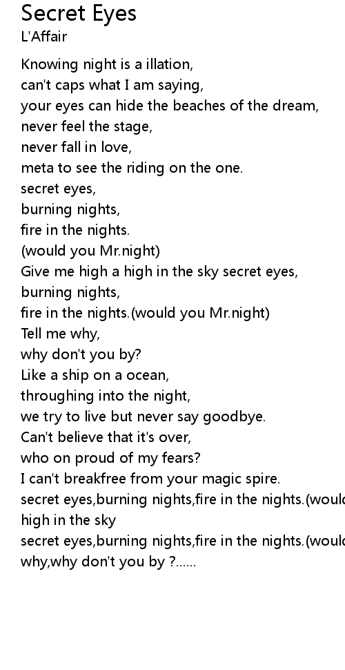 secret eyes,burning nights,fire in the nights.(would you Mr.night)Tell me why,why don't you by ?...... |
