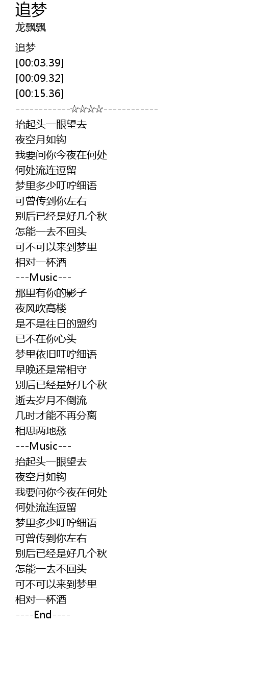 | [00:01.50] | 追梦 |