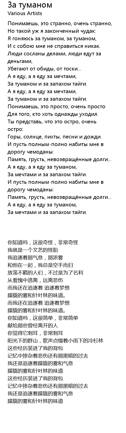 | [00:33.77] | Я гоняюсь за туманом, за туманом, |