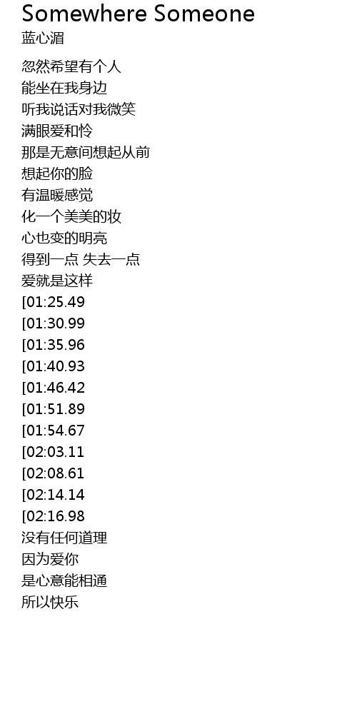 | [03:12.70][01:51.89] | Somewhere Someone |