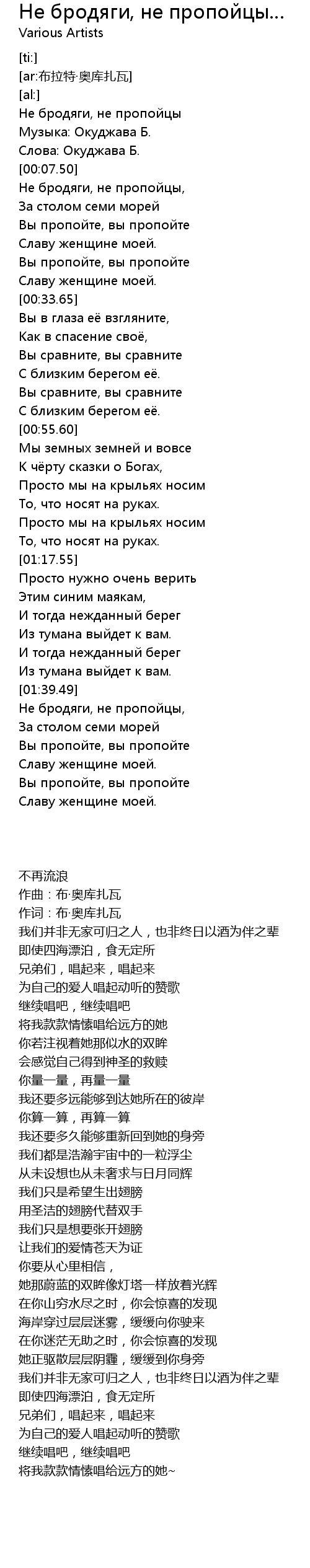 | [00:03.84] | Музыка: Окуджава Б. |