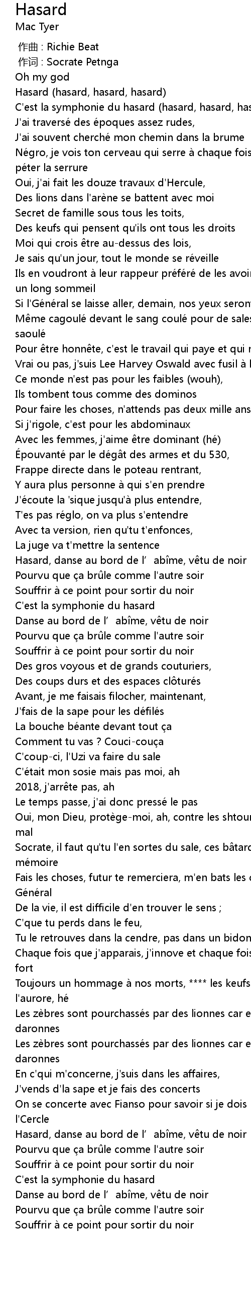 | [00:11.01] | Hasard (hasard, hasard, hasard) |