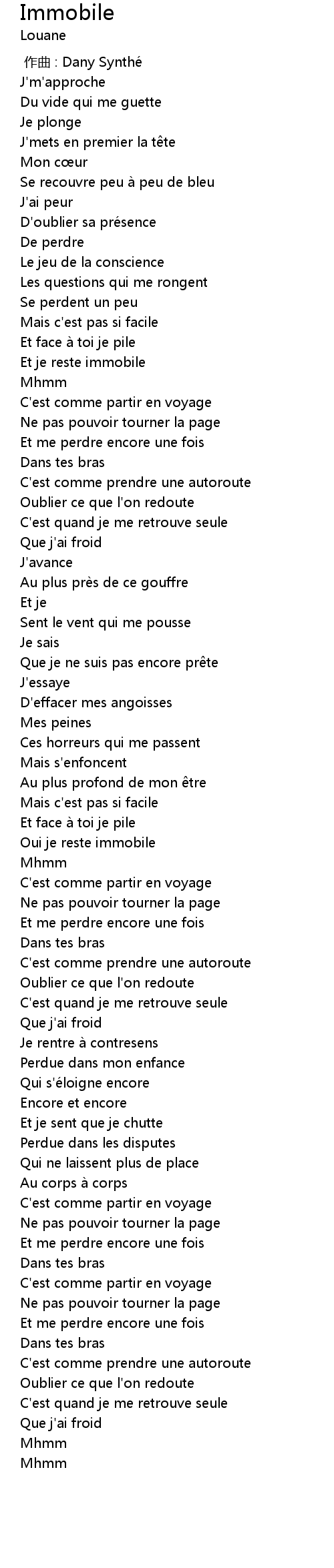 | [01:34.62] | Oui je reste immobile |