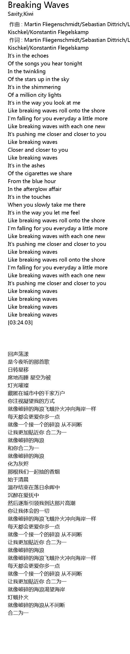 | [03:21.61] | Like breaking waves |